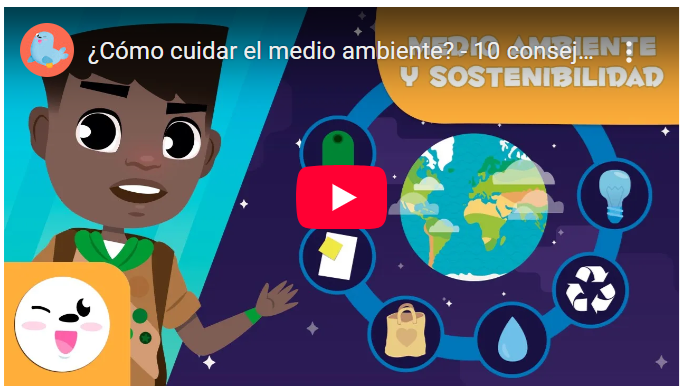 “Hola, amigos. Tengo una misión muy importante, cuidar del medio ambiente y ayudar par que niños como vosotros colaboréis con esta labor esencial para nuestro planeta. Como ya sabéis el ser humano y el medio ambiente están estrechamente relacionados. Cuando las personas ocasionan un daño en la naturaleza se generan problemas ambientales. Estos daños implican cambios perjudiciales para el medio ambiente que en muchos casos serán irreversibles y afectarán a la salud de todos los seres vivos. Mira éste rio, las personas han vertido residuos, el agua se ha contaminado y ahora nadie podrá beber agua potable. ¡Oh, no! Además, hay muchos animales y seres vivos que morirán a causa de la contaminación.Afortunadamente proteger la naturaleza y cuidar el medio ambiente está en nuestras manos, para ello os he traído un decálogo con diez ideas muy fáciles. Vamos a verlas. Apaga las luces y los aparatos electrónicos que no utilices para ahorrar energía. Reemplaza las bolsas de plástico por bolsas de tela reutilizables. Las bolsas de plástico tardan en descomponerse años y su fabricación es muy contaminante. Separa y recicla los distintos tipos de basura: orgánica, no orgánica, envases, vidrio o papel y cartón. Comprueba que los grifos siempre quedan totalmente cerrados para no desperdiciar el agua. No utilices el inodoro como papelera, ¿sabías que cada vez que tiramos de la cadena se pierden diez litros de agua? Dúchate en lugar de bañarte. En una ducha de cinco minutos podemos gastar 100 litros de agua y durante un baño, hasta 250 litros. Cierra el grifo mientras te cepillas los dientes. Si nos lavamos los dientes con el grifo abierto, podemos gastar una media de 20 litros en cada lavado. Reutiliza el papel. Recuerda que por ejemplo puedes usar las dos caras de un folio para aprovecharlo al máximo. Recoge la basura cuando vayas a la playa o a la montaña. Cuida y respeta a los animales, flores y árboles que te rodean. A que son ideas muy fáciles. Seguro que ya conoces y llevas a cabo muchas de ellas. Con acciones muy sencillas como reciclar, ahorrar energía y agua y cuidar de los seres vivos estamos contribuyendo a un planeta mas sostenible. ¿Conoces esta palabra? Un planeta o ciudad sostenible es aquella que ofrece una buena calidad de vida a sus habitantes sin poner en riesgo los recursos de la naturaleza. De esta manera las generaciones futuras encontrarán un planeta maravilloso donde el crecimiento económico, el cuidado del medio ambiente y el bienestar social estarán en equilibrio. Recuerda que está en tus manos. ¿Te unes a nuestra misión?”